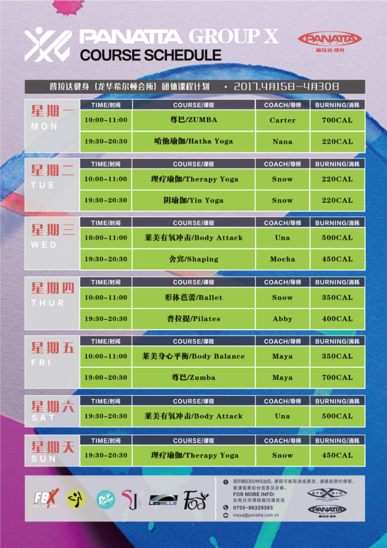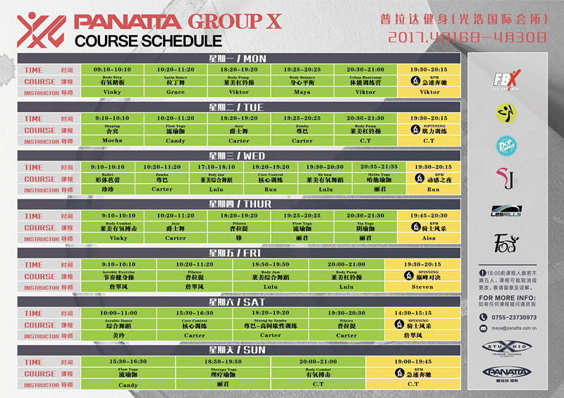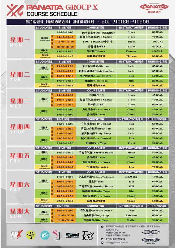 PANATTA GroupX X-Studio团体课程计划(2017) 四月