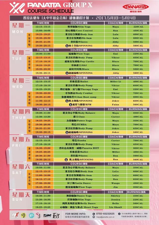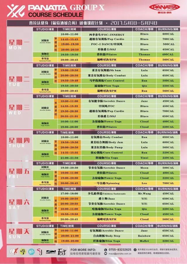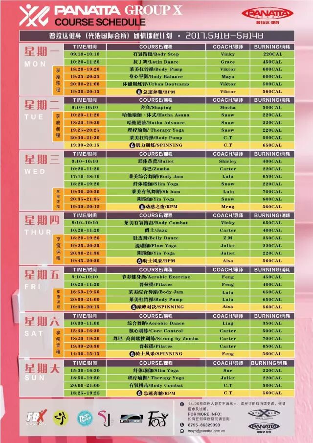 PANATTA GroupX X-Studio团体课程计划(2017) 四月.下半月