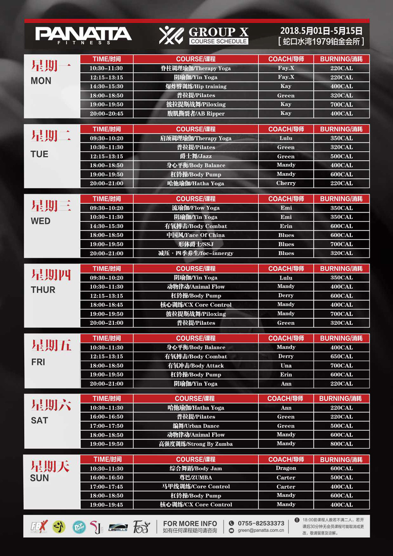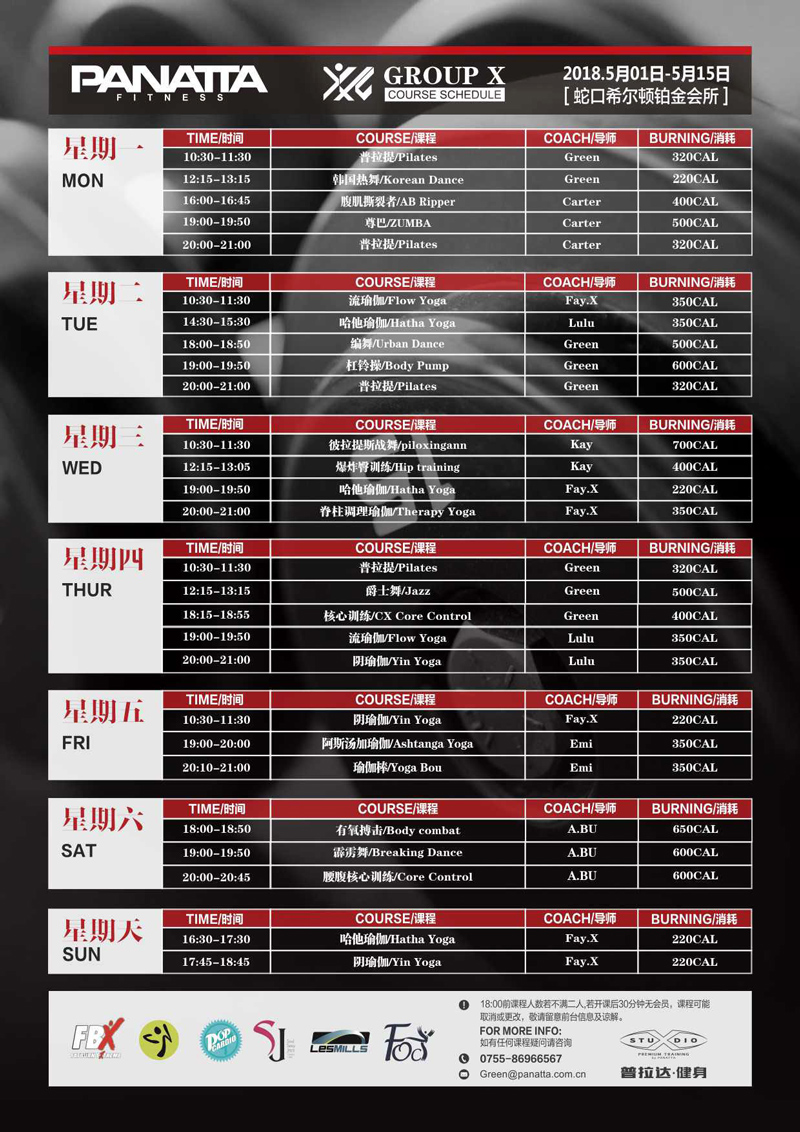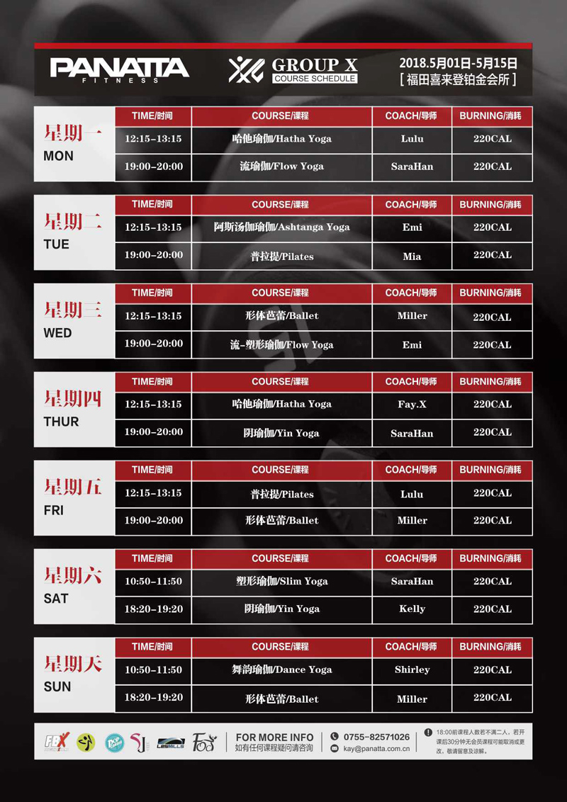 普拉达·健身团体课程计划 | 5月·上半月