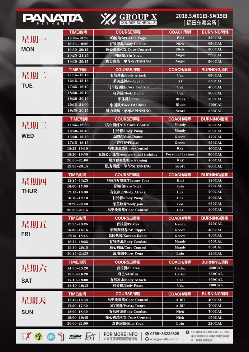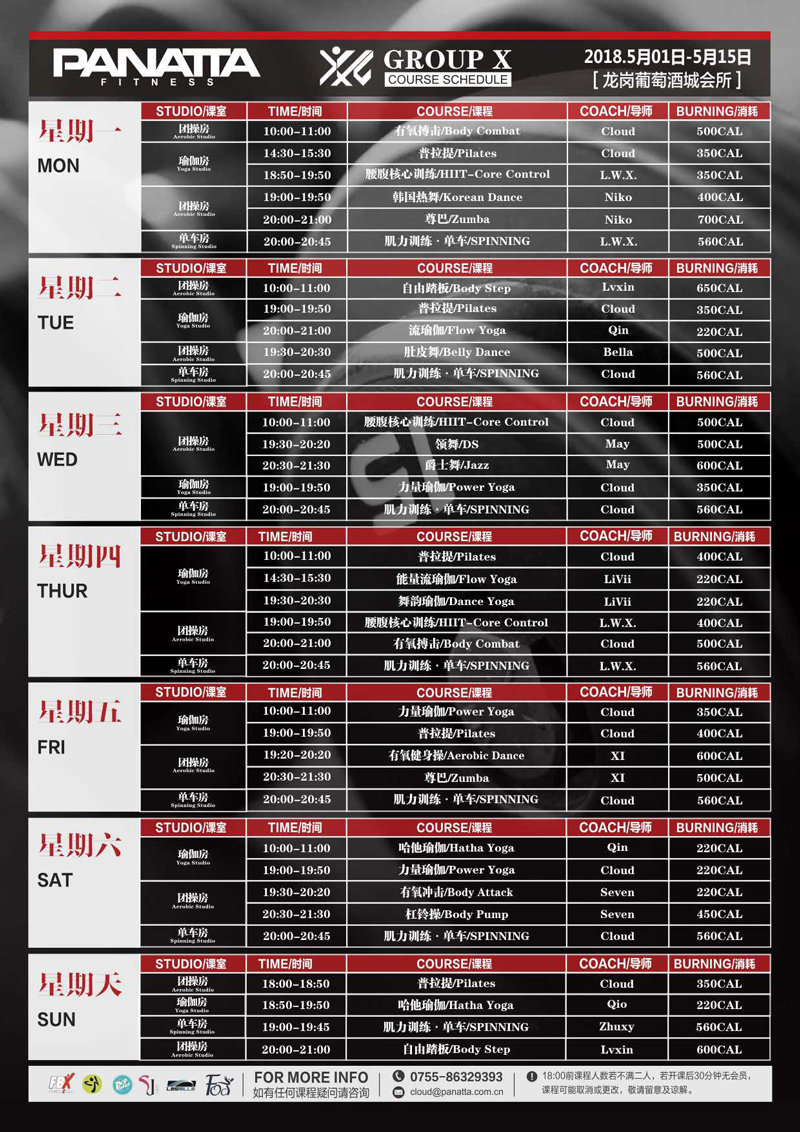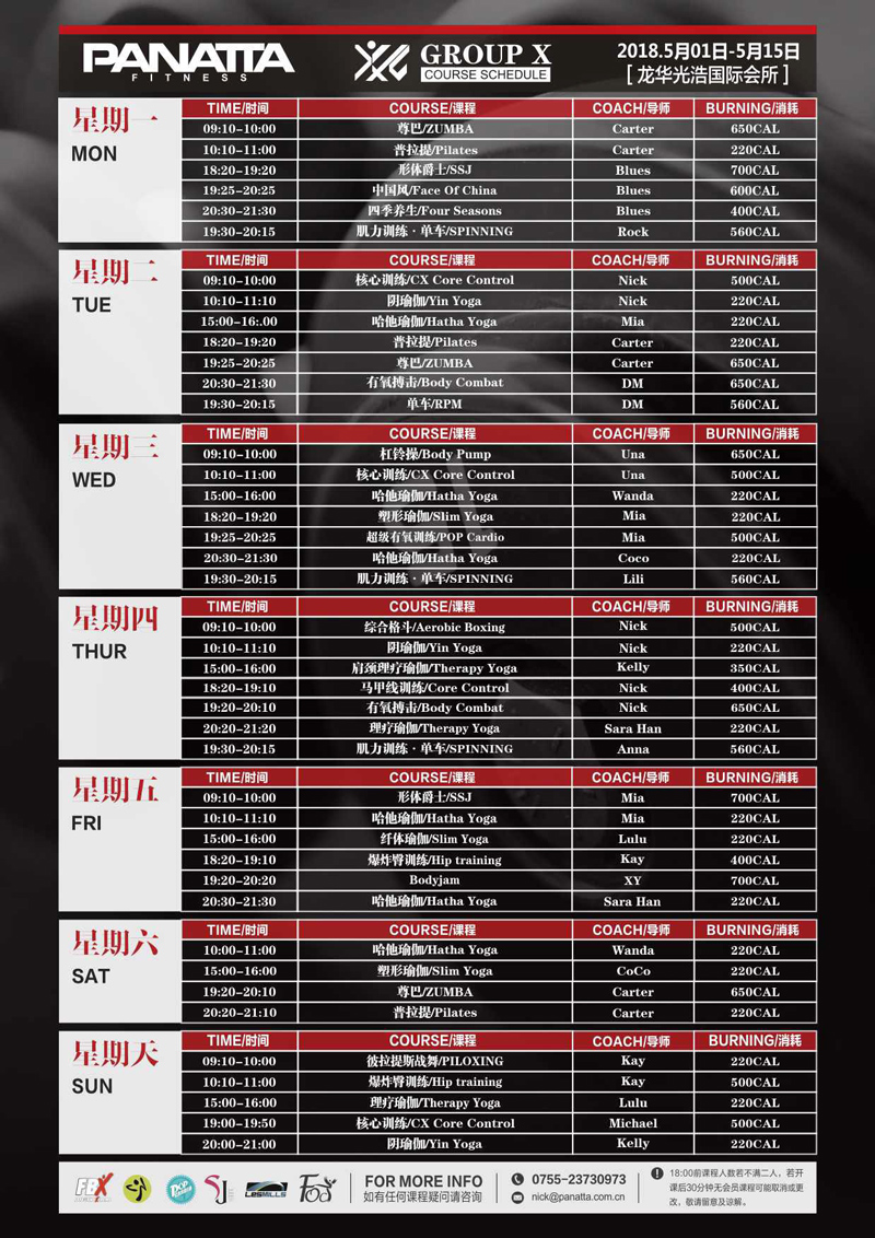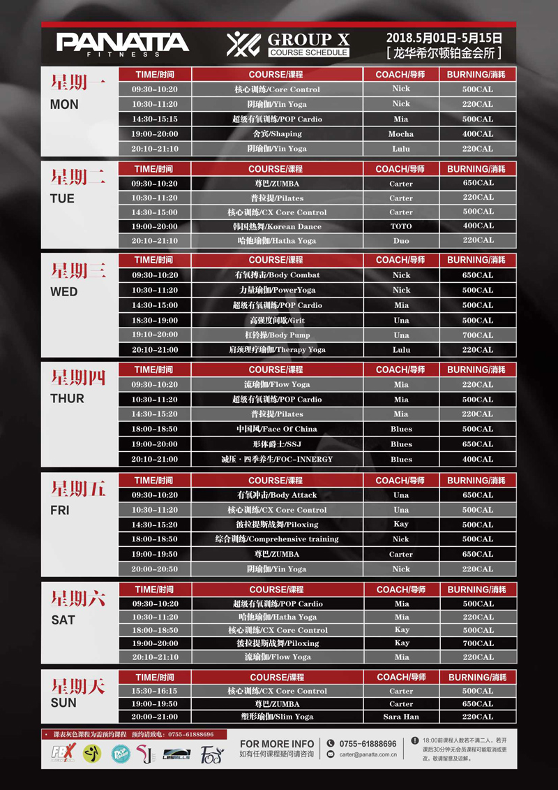 普拉达·健身团体课程计划 | 5月·上半月