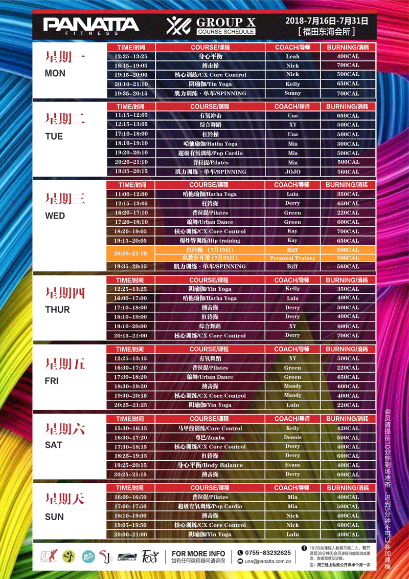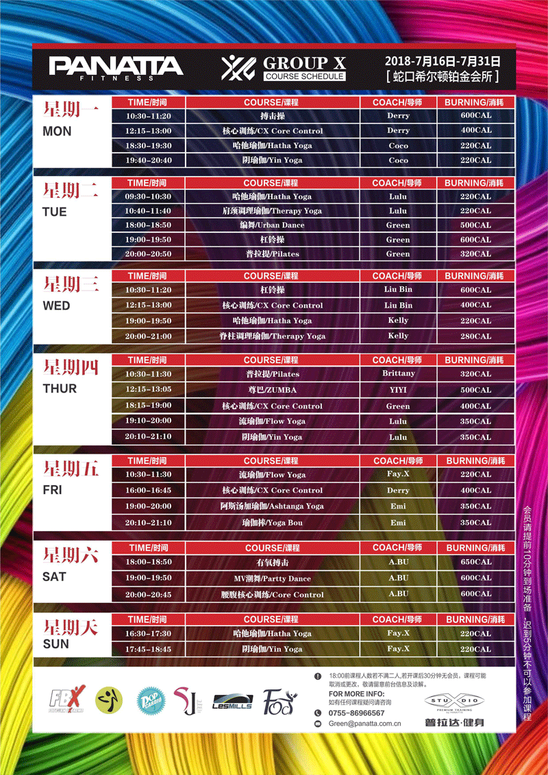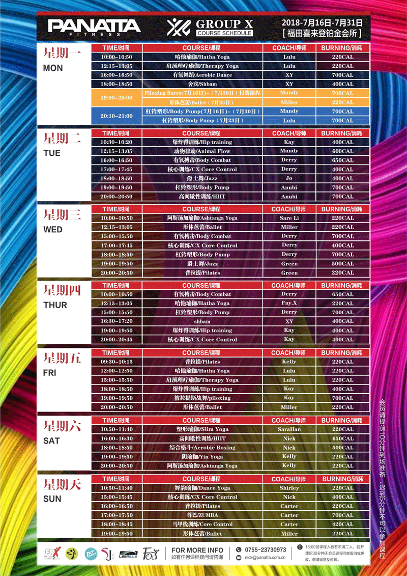 普拉达·健身团体课程计划 | 7月·下半月