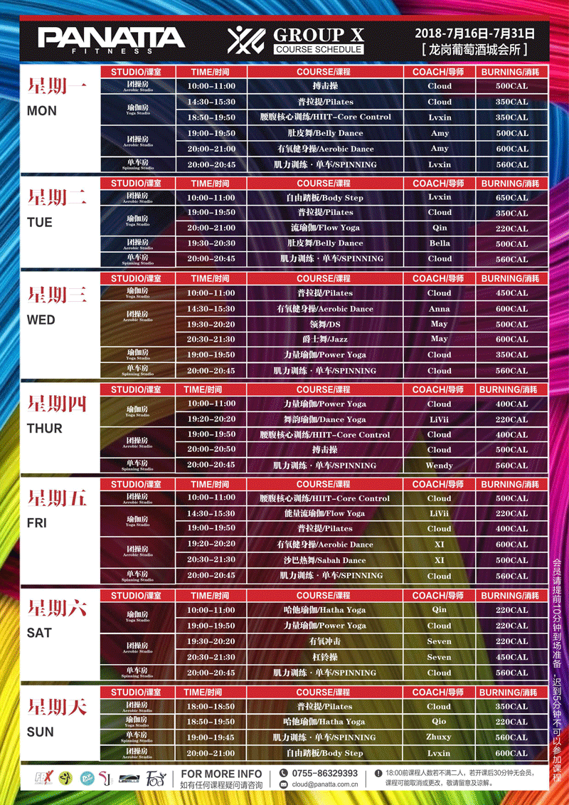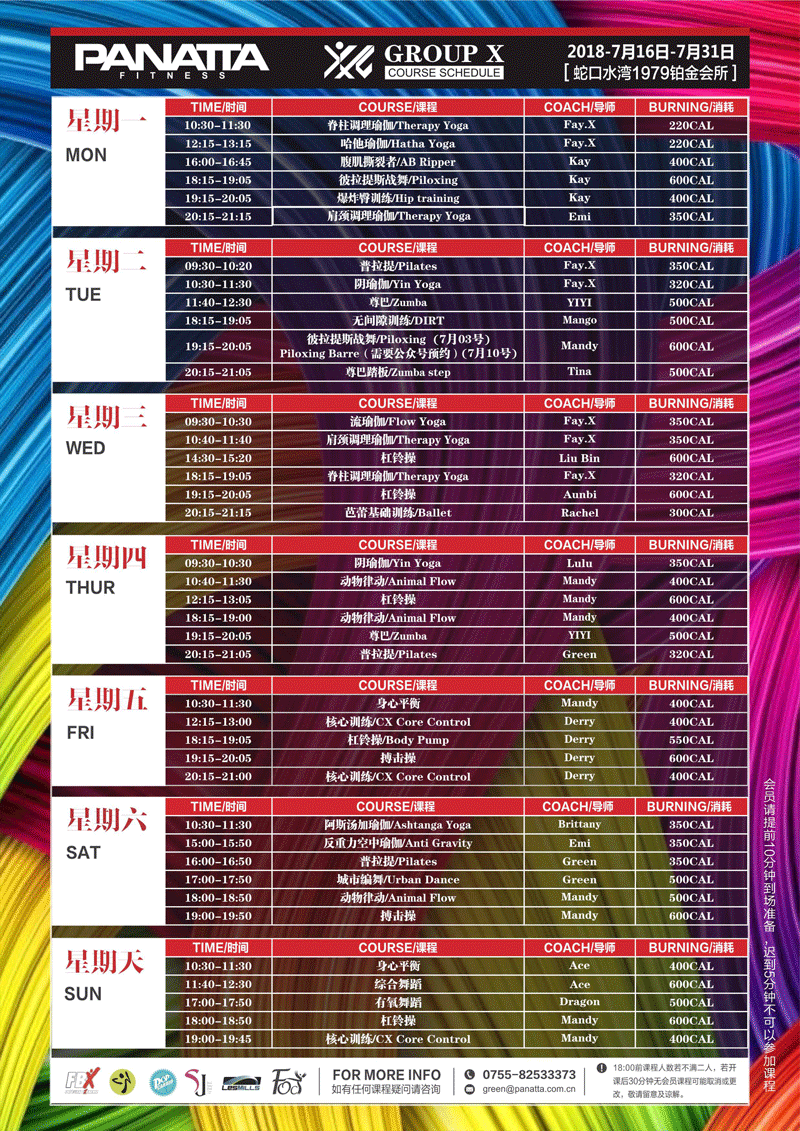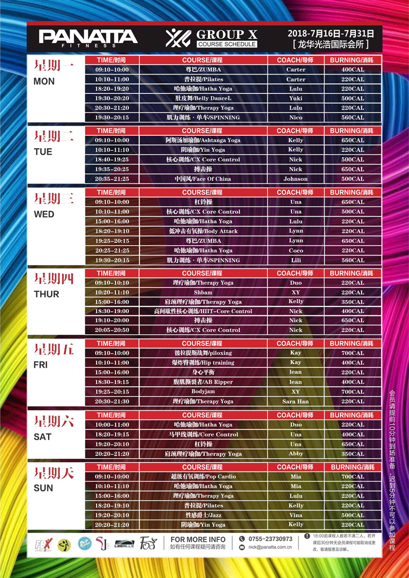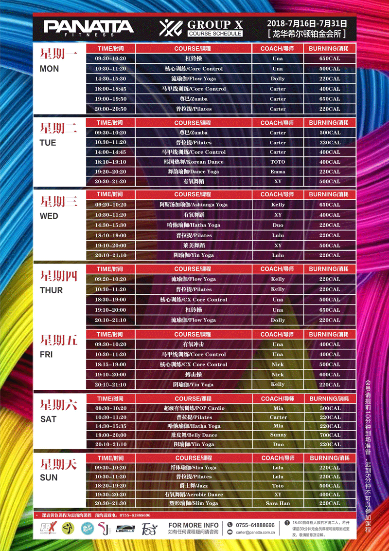 普拉达·健身团体课程计划 | 7月·下半月